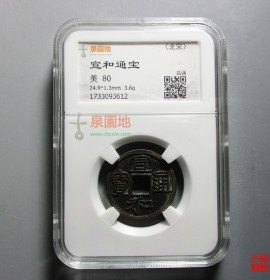 古钱币宣和通宝楷通真品,直径厚度尺寸:25.12~25.34-1.51~1.83MM,宣和通宝楷通重量:4.05g。图中品相的宣和通宝楷通评估价格为: 3620.00元左右。提示:宣和通宝楷通铜钱有多种版别,不同的宣和通宝楷通实体钱币品相也有所不同,结合市场波动拍卖价格亦有所差异。请参考本页面宣和通宝楷通直径厚度重量以及版别特点,仔细